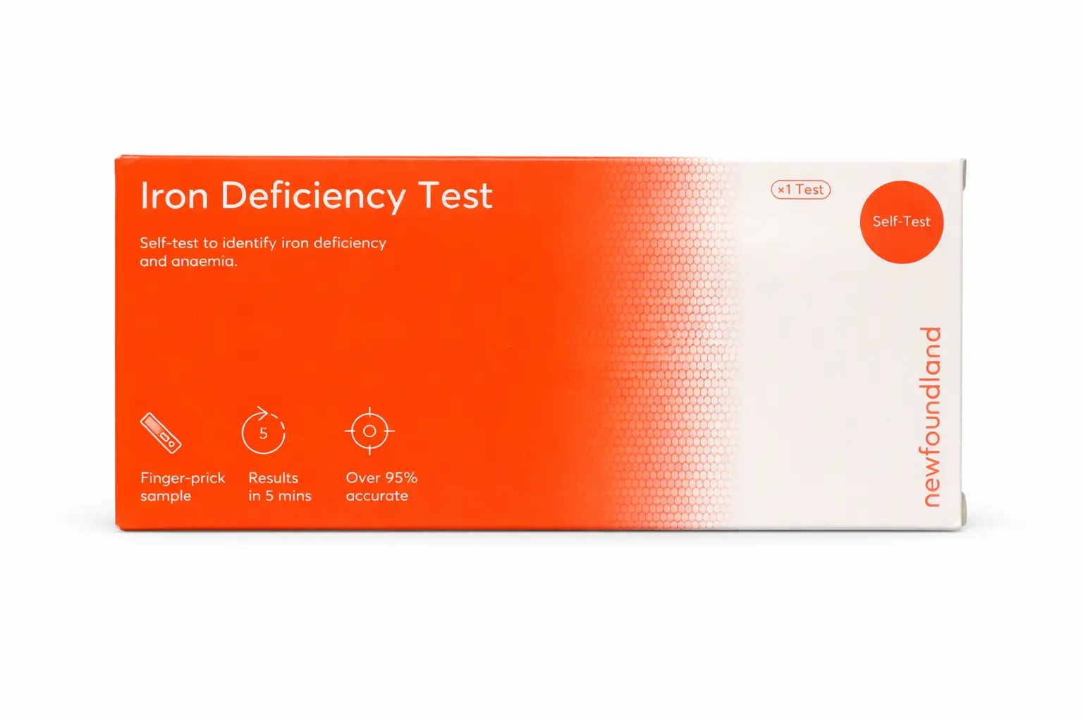 It assesses your blood iron status, often by measuring markers such as haemoglobin or ferritin (depending on the kit design) to indicate whether you may be iron deficient.