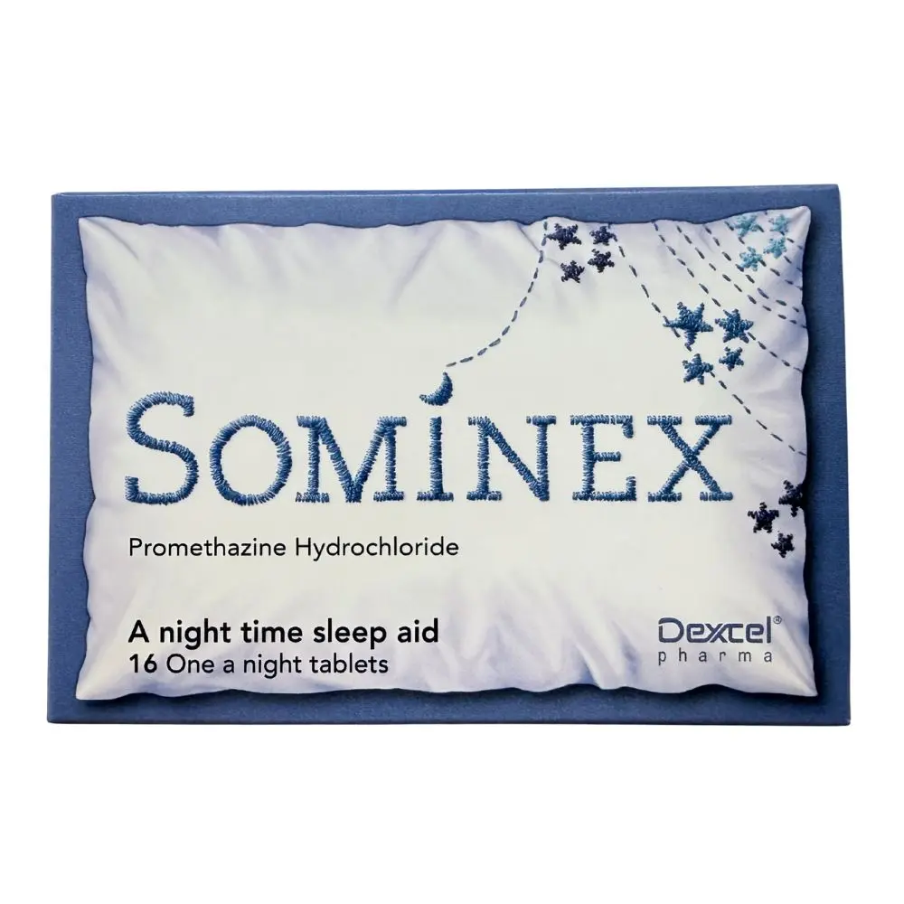 Sominex is a short-term sleep aid containing promethazine hydrochloride, an antihistamine that helps relieve occasional sleeplessness and supports a more restful night’s sleep.