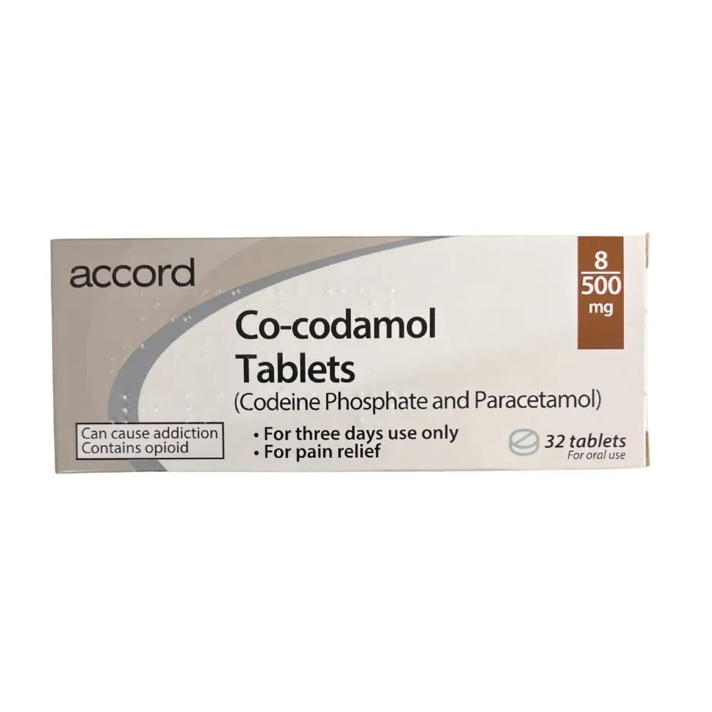 Co-codamol 8/500 tablets contain codeine phosphate (8 mg) and paracetamol (500 mg) and are used for the short-term relief of moderate pain when other painkillers, such as paracetamol or ibuprofen alone, are not effective. Suitable for adults aged 18 years and over only. Always use the lowest effective dose for the shortest possible time and read the patient information leaflet before use.